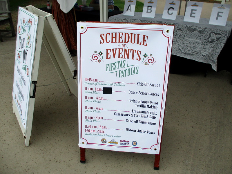 Everyone could get a small Mexican flag to wave during the fun, cultural event.Here comes the Fiestas Patrias parade!Dulce the Old Town donkey leads the Fiestas Patrias parade.Smiles and period attire on parade!The parade included volunteers of Old Town San Diego State Historic Park.Many traditional Mexican folk dances would follow the parade.Young dancers from San Diego ballet folklorico school Gift of Dance.Pure joy.Fiestas Patrias activities for families in Old Town’s historic central plaza.A smile from Strenger Studio, which provides calligraphy workshops and supplies in Old Town.A young Fiestas Patrias visitor learns calligraphy.Kids were learning how to make confetti-filled cascarones here.Traditional tortilla-making demonstration.Friendly Boosters of Old Town work the Guac’ Off Competition tent.Which guacamole is best? Winner gets bragging rights for a year!