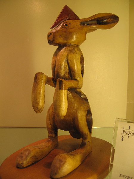 Here is some of the wildly creative woodwork that really caught my eye. You’ll notice many pieces have an Alice in Wonderland theme. That’s because this year’s San Diego County Fair is all about that timeless children’s book penned by Lewis Carroll. White Rabbits, March Hares and Mad Hatters abound! Everywhere you turn there’s a tea party or a grinning Cheshire Cat!