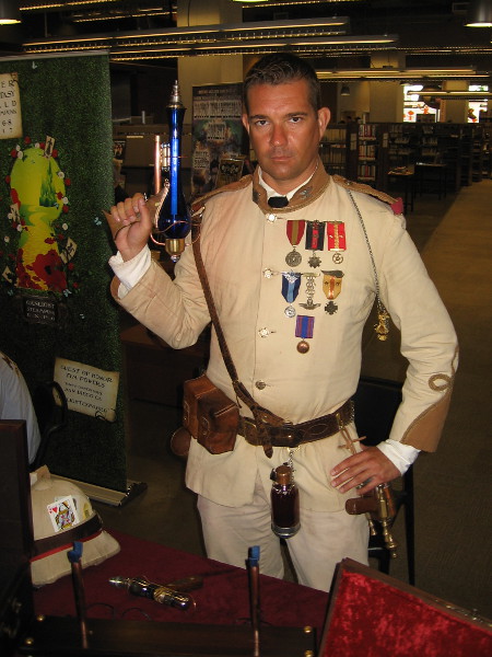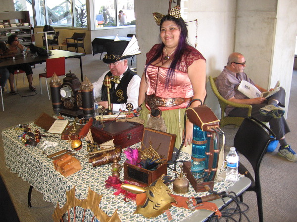San Diego Steampunk, Gaslight Steampunk Expo, and the Friends of the Central Library put on an event that still has me smiling as I write this! You wouldn’t believe all the awesome steampunk costumes and gizmos and props and gadgets and inventions and artwork that filled a good chunk of the library’s first floor. I saw original stuff inspired by Lewis Carroll, H. G. Wells, Jules Verne… Some of my favorite authors! There were also a couple lectures and something called Tea Dueling, which I missed. Perhaps next year…