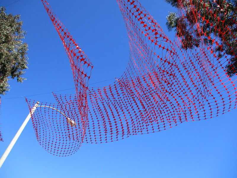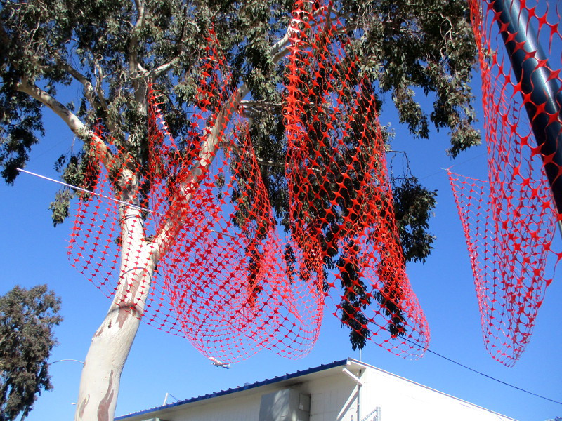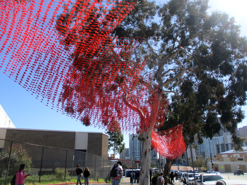 The original black fabric JOURNEYworm has been replaced. The sinuous art installation, which is visible along Park Boulevard near San Diego High School, is now made of orange plastic safety fencing!