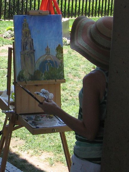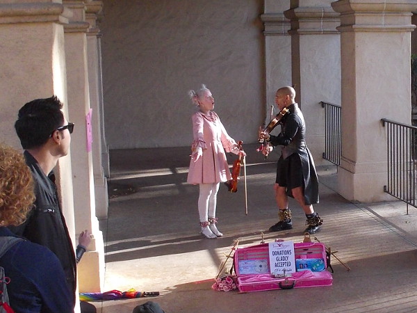 Street musicians add magic to the park, entertaining both young and old.An artist paints the California Tower from the edge of the San Diego Museum of Art’s grassy May S. Marcy Sculpture Garden.A park visitor on roller skates passes through the May S. Marcy Sculpture Court while diners at Panama 66 enjoy life.A pair of penny-farthing riders head through the Plaza de Panama in Balboa Park on a sunny San Diego day.Visitor to Balboa Park reads sign describing an outdoor sculpture recently installed in the Plaza de Panama, part of the Art of the Open Air exhibit.Street performers in the colorful Plaza de Panama. A child readies for a photo on the splashing fountain.A street performer will attempt to free himself from inescapable chains at the foot of the reflecting pool.A large crowd watches some exciting street entertainment. The amazing Botanical Building stands in the background.One of many unique characters that visitors might see during a walk through Balboa Park in San Diego.A photography class in world-famous Balboa Park. Students check out their cameras near the Museum of Man.The very popular Nate’s Point Dog Park at the west end of the Cabrillo Bridge on a typical, magical day.People enjoy sports on the broad grassy area at the west edge of Balboa Park.Plucking arrows from a target in Balboa Park’s 28-acre Rube Powell Archery Range. I took this photo while crossing Cabrillo Bridge.A couple enjoys a lovely day during a stroll through the Alcazar Garden.Victorian street act wows a small crowd within colonnade of the Casa del Prado.A glimpse down El Prado past the Bea Evenson Fountain, from east to west, through the central part of Balboa Park.Another beautiful day in one of the most wonderful places on Earth.