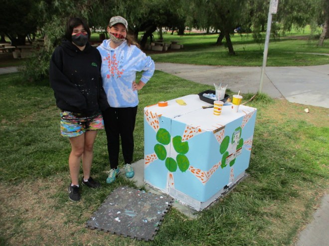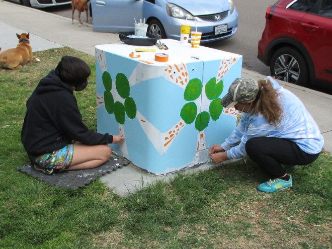 A total of 25 utility boxes are being painted around downtown by professional artists, taking their inspiration from the San Diego Museum of Art’s biennial exhibition of local student art, which this year is titled Young Art 2021: My World, Our Planet. The super nice people at Mindful Murals are coordinating the various artists.
