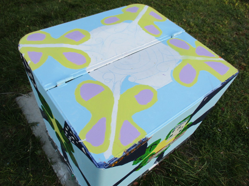 The past few weeks I’ve posted photographs of many other boxes. To see them, and to learn even more about Young Art: Outside the Frame, click here and here and here and here and here. To see how some of the finished utility boxes compare with the original youth art that is now being exhibited in the museum, click here!