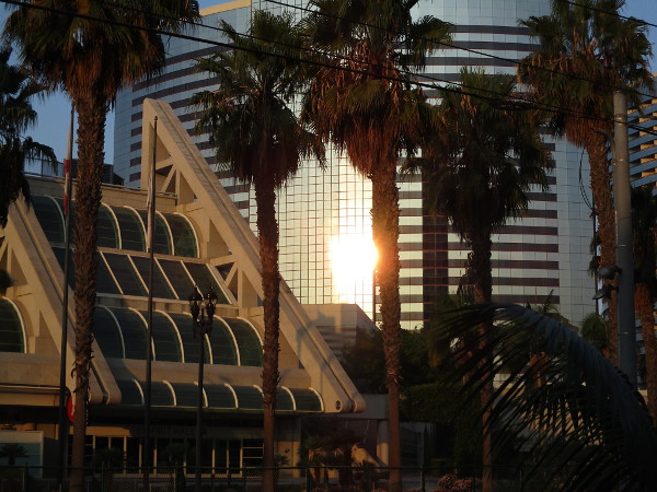 I was walking around the San Diego Convention Center this morning, looking for cool stuff popping up for this weekend’s Comic-Con Special Edition, when I had to pause on the Harbor Drive pedestrian bridge and marvel at the brilliant sunrise.