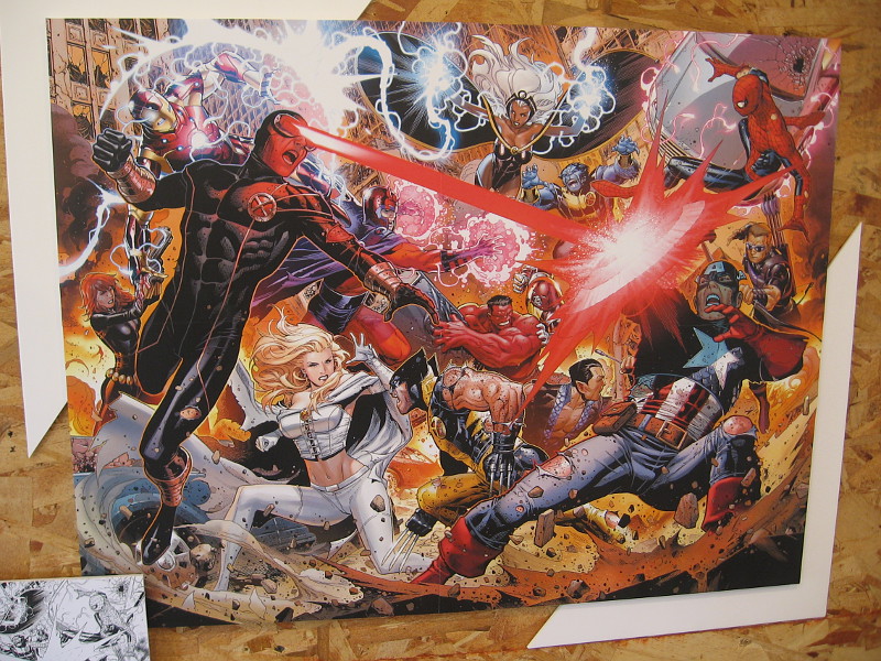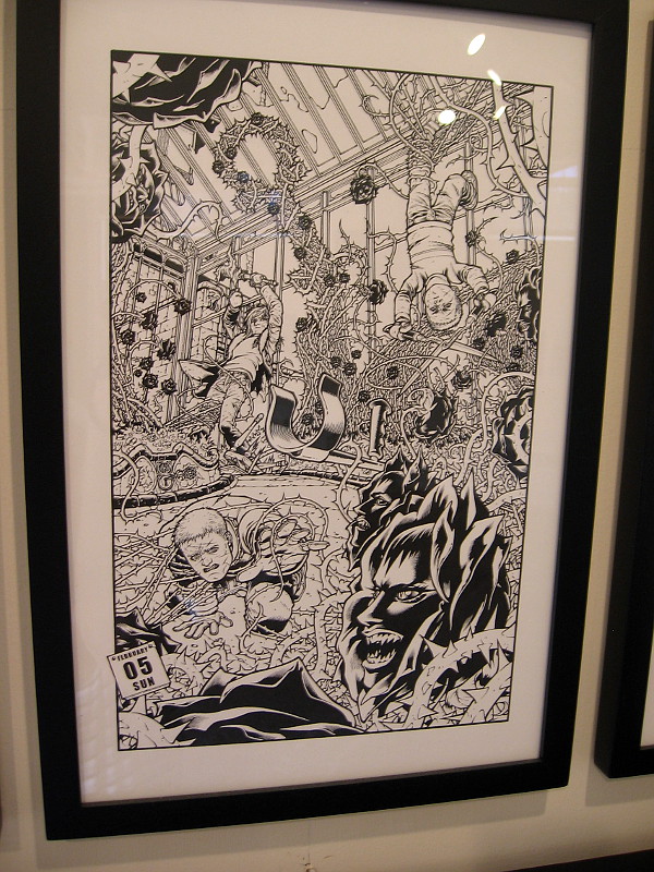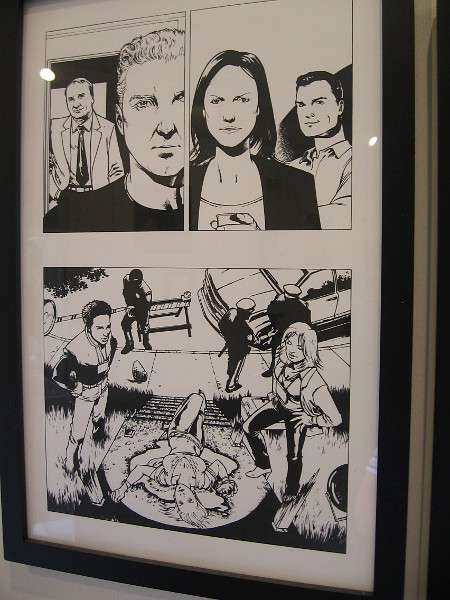 Sense of Wonder: The Art of WonderCon Anaheim features a gallery full of original artwork used for the covers of WonderCon program books. Many top comic artists have created these covers over the years, and visitors this evening were admiring sketches, thumbnails and finished pieces by the likes of Jim Lee, Dan Jurgens, and many others.