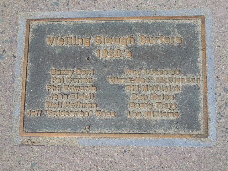 The plaques recall those who rode the big waves at the Tijuana Sloughs and honor bits of Imperial Beach surfing history.