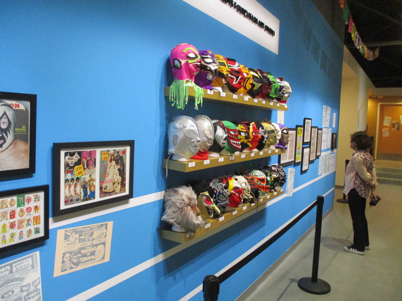 Young and old, lucha libre fans and those who are merely curious–all will enjoy seeing actual masks and costumes worn by wrestling stars, not to mention artwork, posters, comic books, championship belts, collectibles and more.
