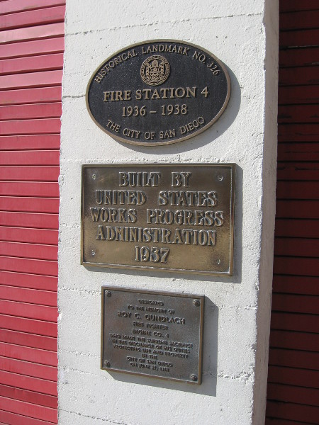 New skyscraper in San Diego to be headquarters of Sempra Energy.Steel lattice, glass grid and odd reflections make for an interesting photo.Construction of this gleaming high-rise can be observed in downtown San Diego.Stately little Fire Station No. 4 beside new modern skyscraper.This is the oldest firehouse in San Diego, in service since 1938.Fire Station 4, built as a New Deal WPA project, is a designated historical landmark.Beautiful old San Diego firehouse at the foot of what will be a shiny new skyscraper.