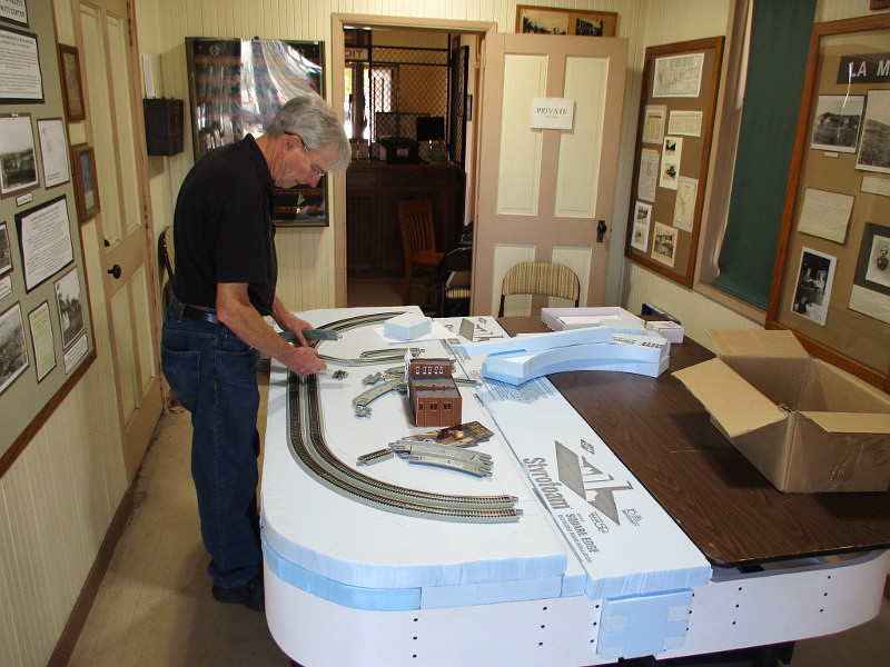 During my last visit to the La Mesa Depot several years ago, Station Master Timothy was building a new layout in the historic depot’s baggage room. It has been replaced by a detailed, fully functioning HO scale layout with small town charm and mountain scenery!
