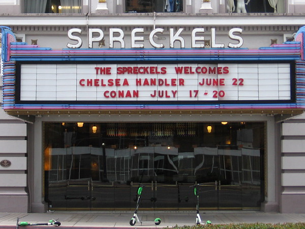 This morning I noticed Conan O’Brien’s name has reappeared on the marquee of San Diego’s Spreckels Theatre. That means Comic-Con can’t be too far away!