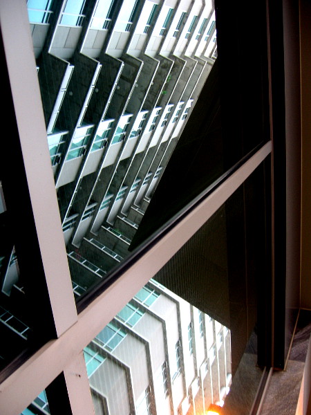 I was getting ready to board a trolley this evening at America Plaza when activity in a window caught my eye.