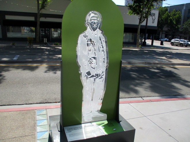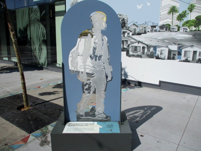 I’m glad I experienced José Sacal‘s bronze sculptures today, before they vanish. You can see from my photos how the artist has interpreted famous people and images from photographs and paintings.