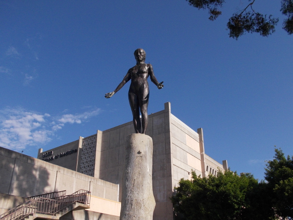 According to this web page: “The pathway will be made from basalt blocks hewn with words and phrases drawn from the writings of authors from many disciplines, all associated with UC San Diego and the history of the site….“