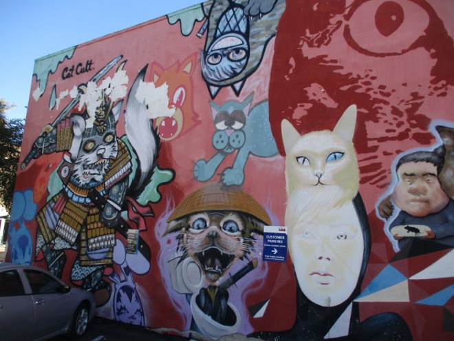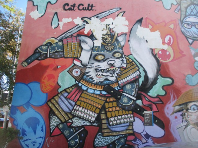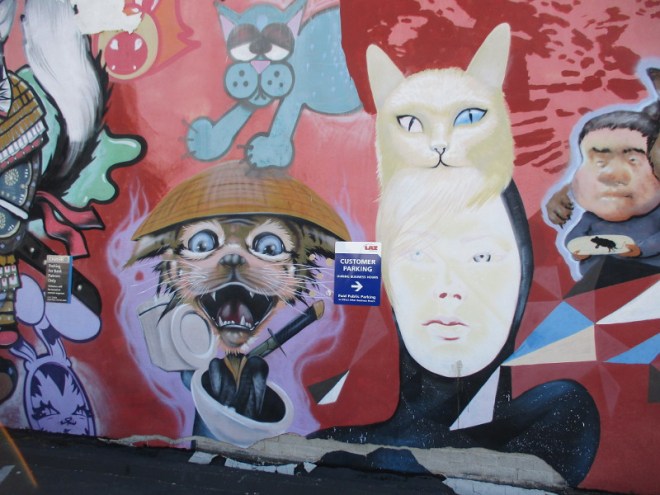 Two colorful murals in East Village promote riding bicycles and scooters. They’re painted on the north side of the old Farkas Store Fixtures building, on G Street between Ninth and Tenth Avenue.