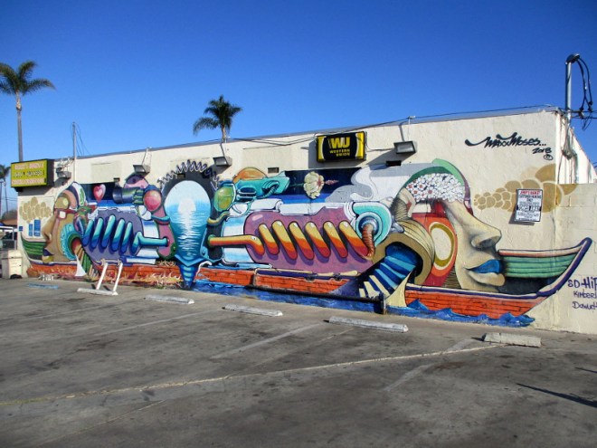 You’ve might have seen photos of his distinctive, highly inventive murals previously. Click here and you’ll see a variety of blog posts that include Maxx Moses’ work around San Diego.