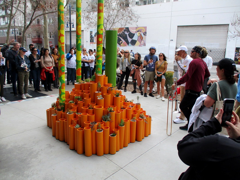 MAKE Farm is located immediately south of the large Snapdragon Stadium parking lot, a little east of the Stadium trolley station. According to signs I spotted today, their offerings include Garden Veggie Wraps and Yogurt Parfaits, and you get a free cookie during your visit, too!