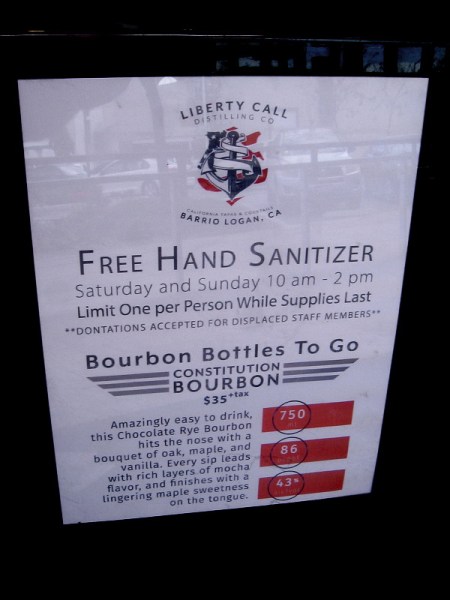 This morning I headed down to Barrio Logan, just south of downtown San Diego, to pick up a free bottle of coronavirus killing hand sanitizer! I’d heard free bottles were being handed out on weekends by Liberty Call Distilling during the current COVID-19 pandemic.