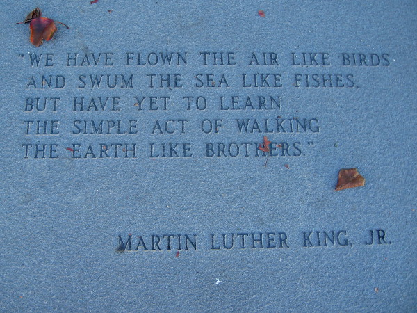 Walking past a plaque which is engraved with one of many important quotes by Martin Luther King Jr.