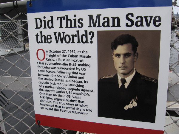 A fantastic exhibit recently opened at the Maritime Museum of San Diego. You’ll find it aboard their B-39 Foxtrot-class Soviet submarine. The exhibit, using videos, a light show and other exciting effects, tells the story of how one man likely saved the world.