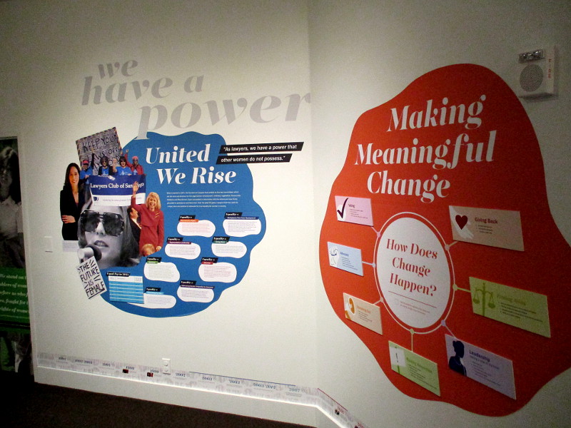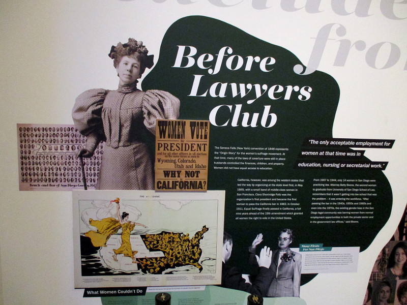 Displays filled with photographs and detailed descriptions explain how over the years women have fought for equal rights and opportunity in California, and San Diego in particular.