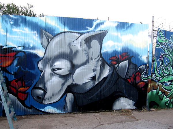 Another neighbor in Logan Heights has a dog that resembles this cool spray paint artwork by Fizix!