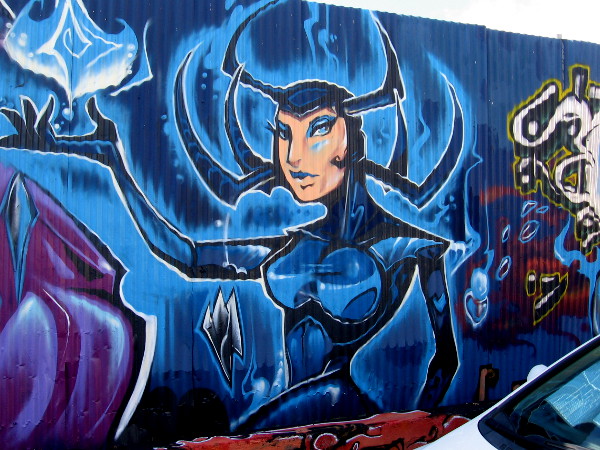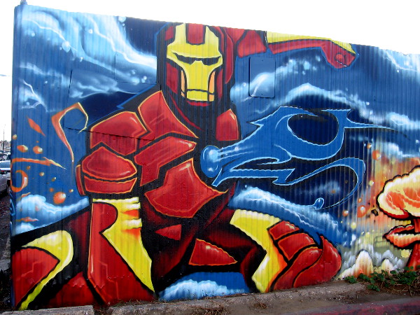Check out this awesome spray paint street art on a wall south of the intersection of 31st Street and Commercial Street in Logan Heights! It’s loaded with comic book superheroes, villains and other cool characters!