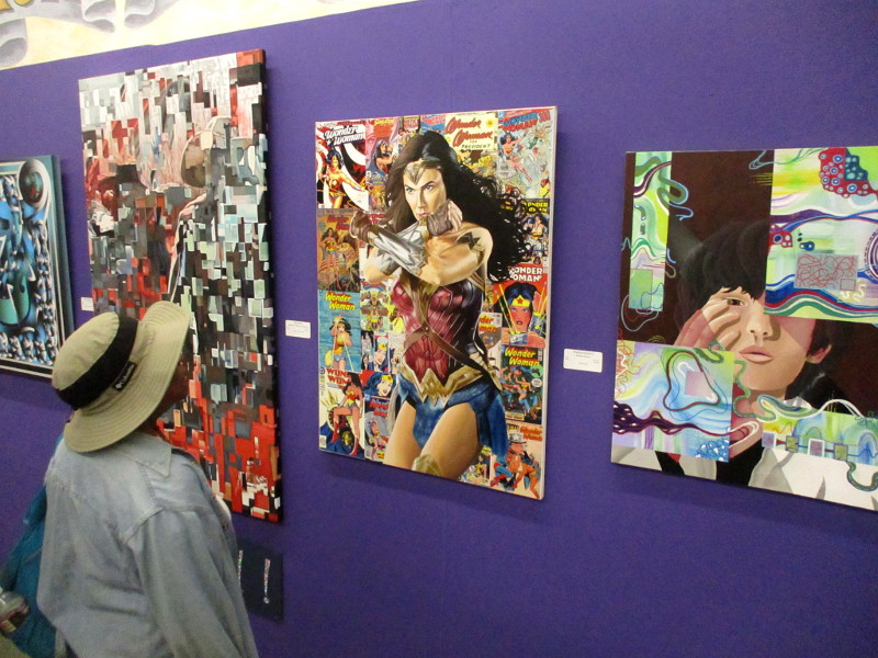 Sense of Wonder: The Art of WonderCon Anaheim features a gallery full of original artwork used for the covers of WonderCon program books. Many top comic artists have created these covers over the years, and visitors this evening were admiring sketches, thumbnails and finished pieces by the likes of Jim Lee, Dan Jurgens, and many others.