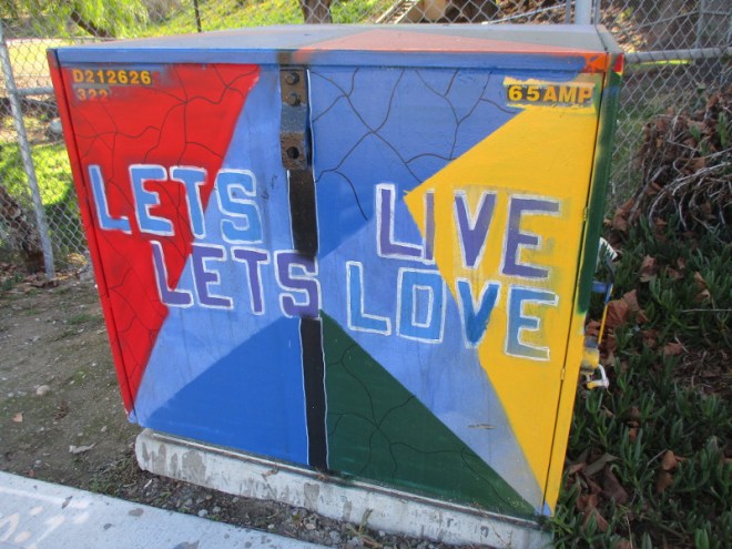 The San Diego based artist Nan Coffey has a unique style which she calls Art All Over. As you can see from my photos, lively art covers every surface of those objects she decorates. Her work promotes connectivity, inclusivity, and love while drawing inspiration from her childhood obsessions with music, cinema, television, and pop culture. Let your eyes wander up, down, right and left and her animated art seems to have no boundary and no end.